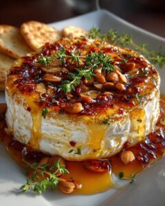 Warm Baked Camembert with Apricot Chili Glaze and Toasted Almonds: The Ultimate Crowd-Pleasing Appetizer ⚖️ Difficulty Easy ⏲️ Prep Time